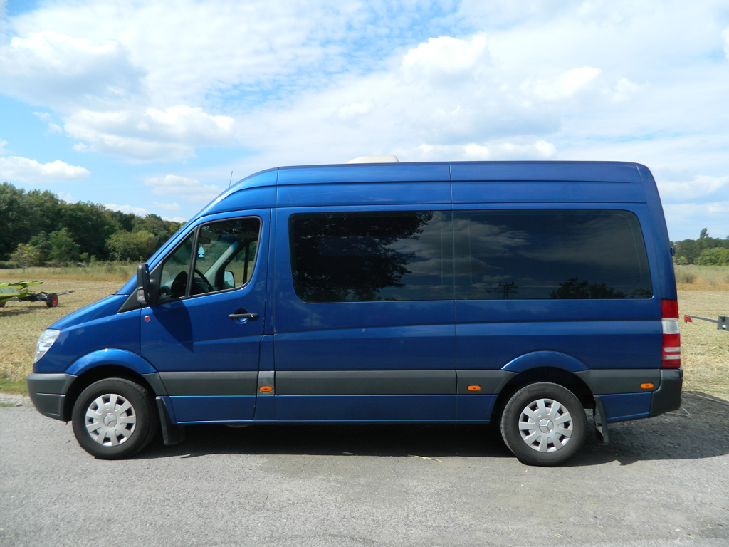 Nadštandardne priestranný a pohodlný 9miestny mikrobus Mercedes Sprinter s 5-stupňovou plne automatickou prevodovkou je možné riadiť s vodičským preukazom skupiny B. Sedadlá sú rozmiestnené tak, aby mali cestujúci dostatok priestoru na nohy, vo vozidle je možné sa voľne pohybovať vďaka vysokému stropu, cestujúci majú čítacie lampičky a viaceré sedadlá majú lakťové opierky. Vozidlo má vo svojej výbave okrem iného aj tempomat a obmedzovač rýchlosti, automatické denné svietenie, trippling, dvojzónovú klimatizáciu a kúrenie, rádio s CD a DVD prehrávačom, LCD display pre zadných pasažierov, ISOFIX, airbagy a elektrické ovládanie predných okien. Batožinový priestor je dostatočne veľký pre batožinu deviatich cestujúcich.